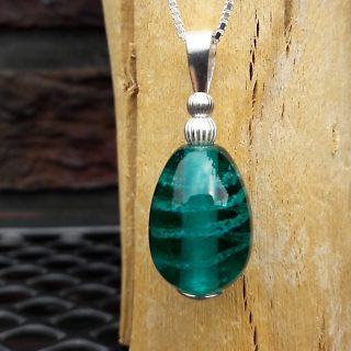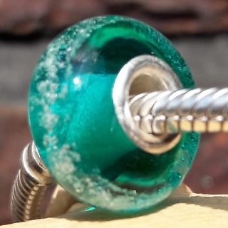 Glasbedel massief met Zilveren kern Kleur Zeegroen 08