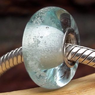 Glasbedel massief met Zilveren kern Kleur Licht blauw