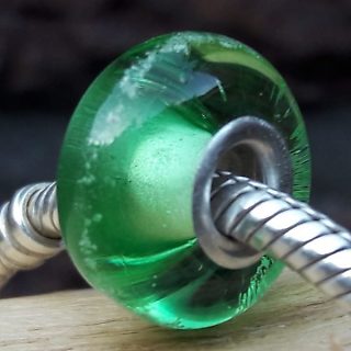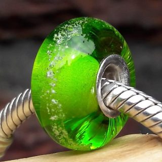 Glasbedel massief met Zilveren kern Kleur Licht Groen