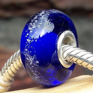 Glasbedel massief met Zilveren kern Kleur Kobalt Blauw