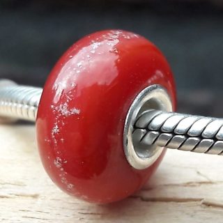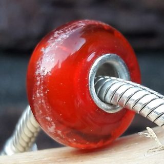 Glasbedel massief met Zilveren kern Kleur Rood