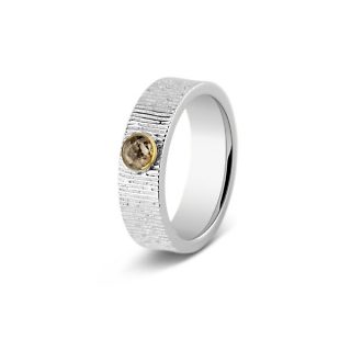 sy / Zilveren ring met 14 krt geelgouden rand. 221
